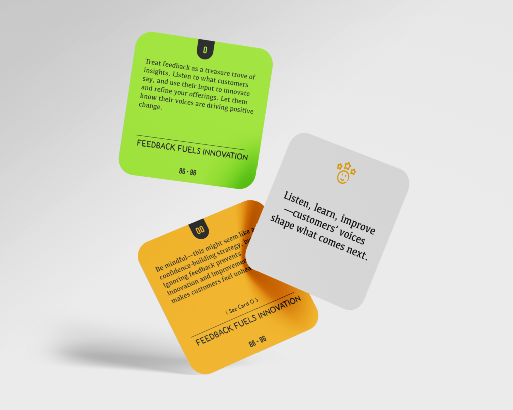 Though the CX Enabler Deck excels as a standalone resource, it integrates seamlessly with the CX Challenge Deck, which offers 96 targeted prompts for addressing specific CX challenges. Each Enabler is linked to multiple Challenge Cards, bridging the gap between high-level strategic thinking and hands-on execution.